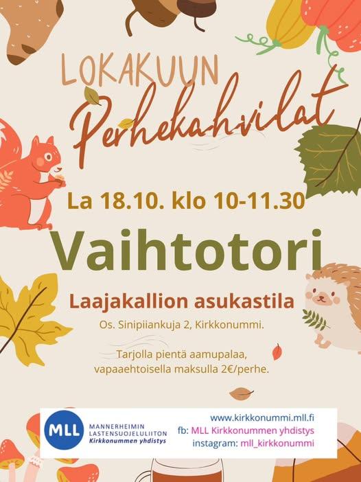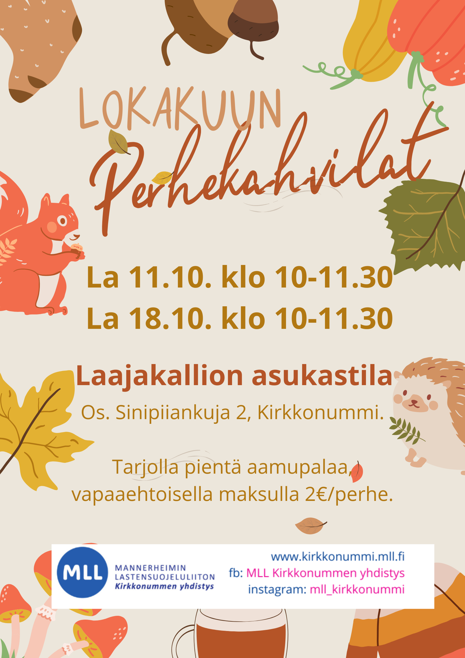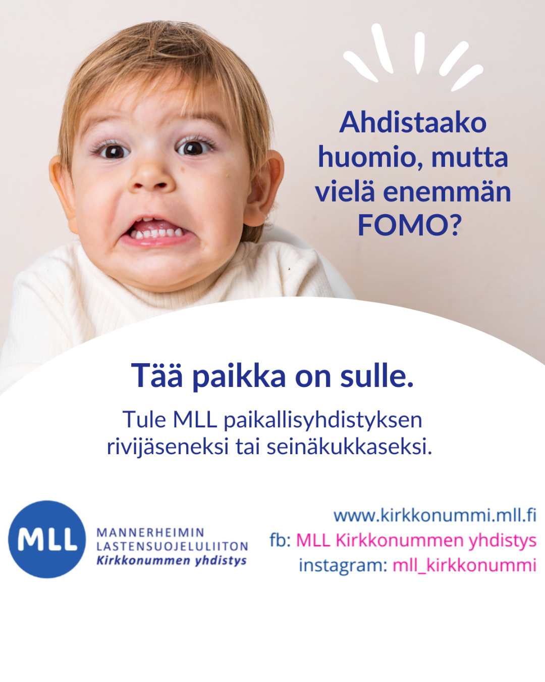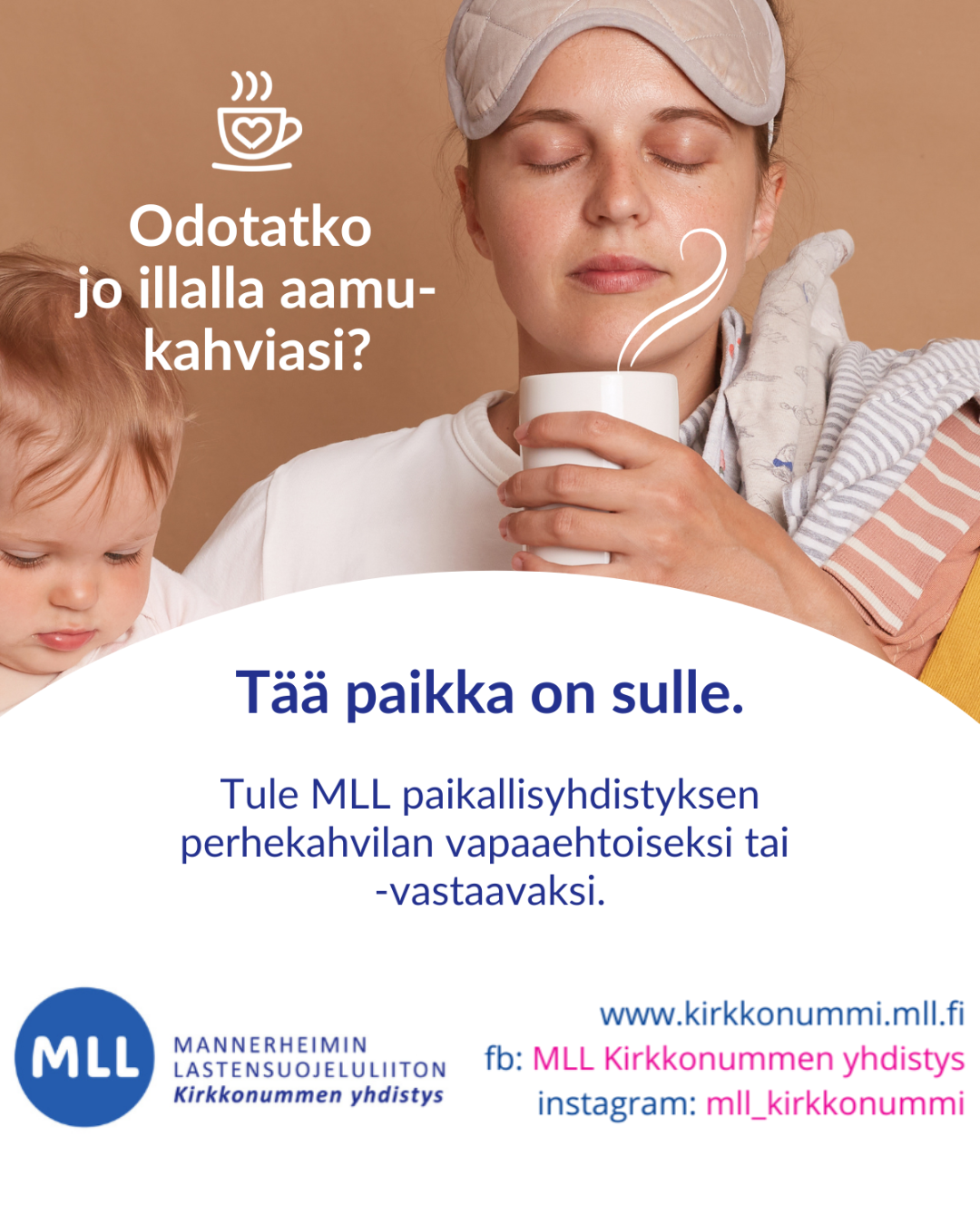 Seuraathan kanaviamme instagramissa (mll_kirkkonummi) ja facebookissa (MLL Kirkkonummen yhdistys), joista löytyy ajankohtaista tietoa perhekahviloista ja muusta toiminnastamme.